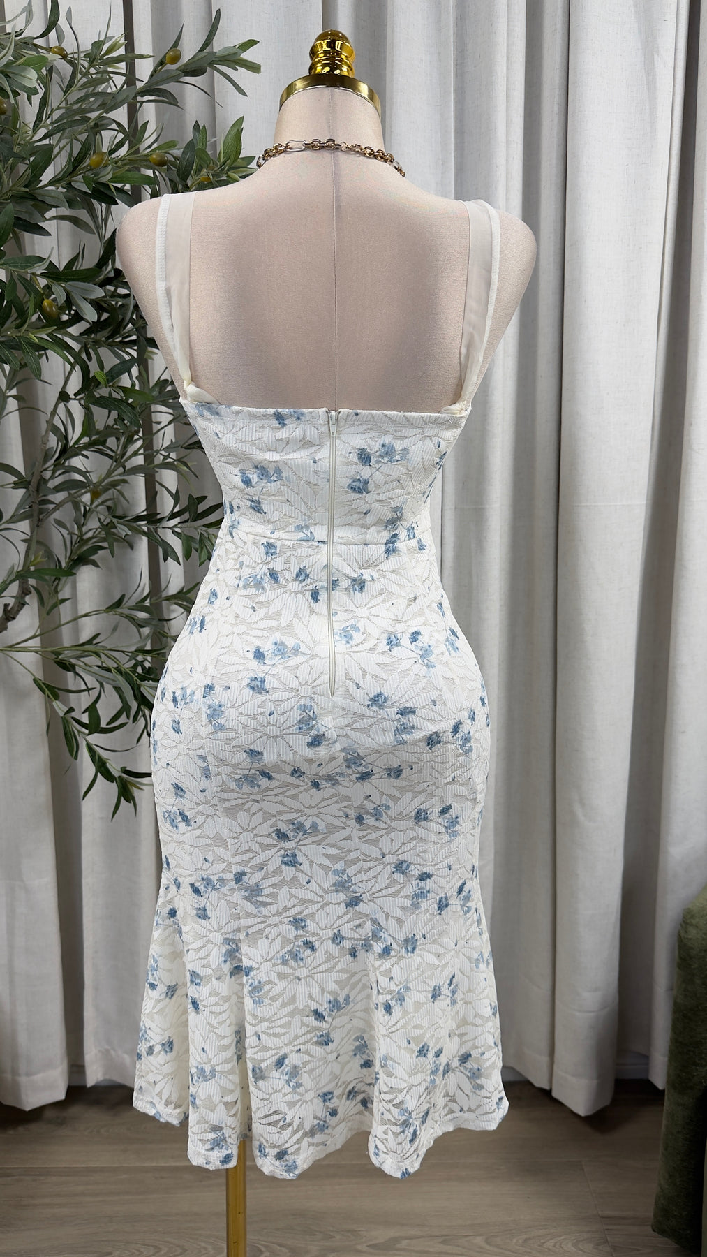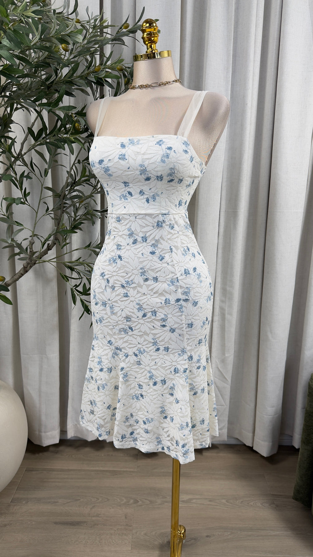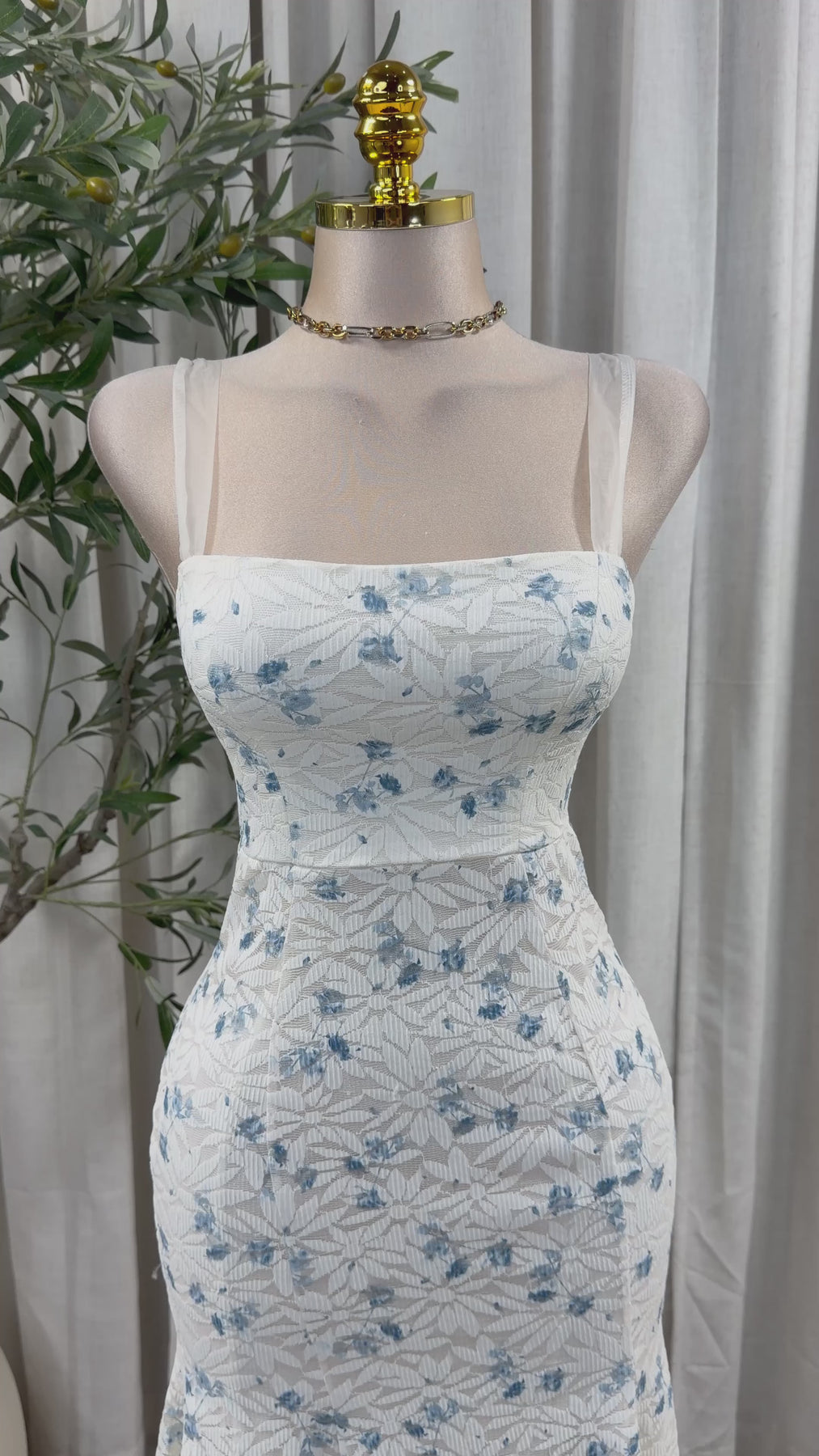 Organza bow strap floral lace midi dress Amazing fit.Hidden zipper on back.