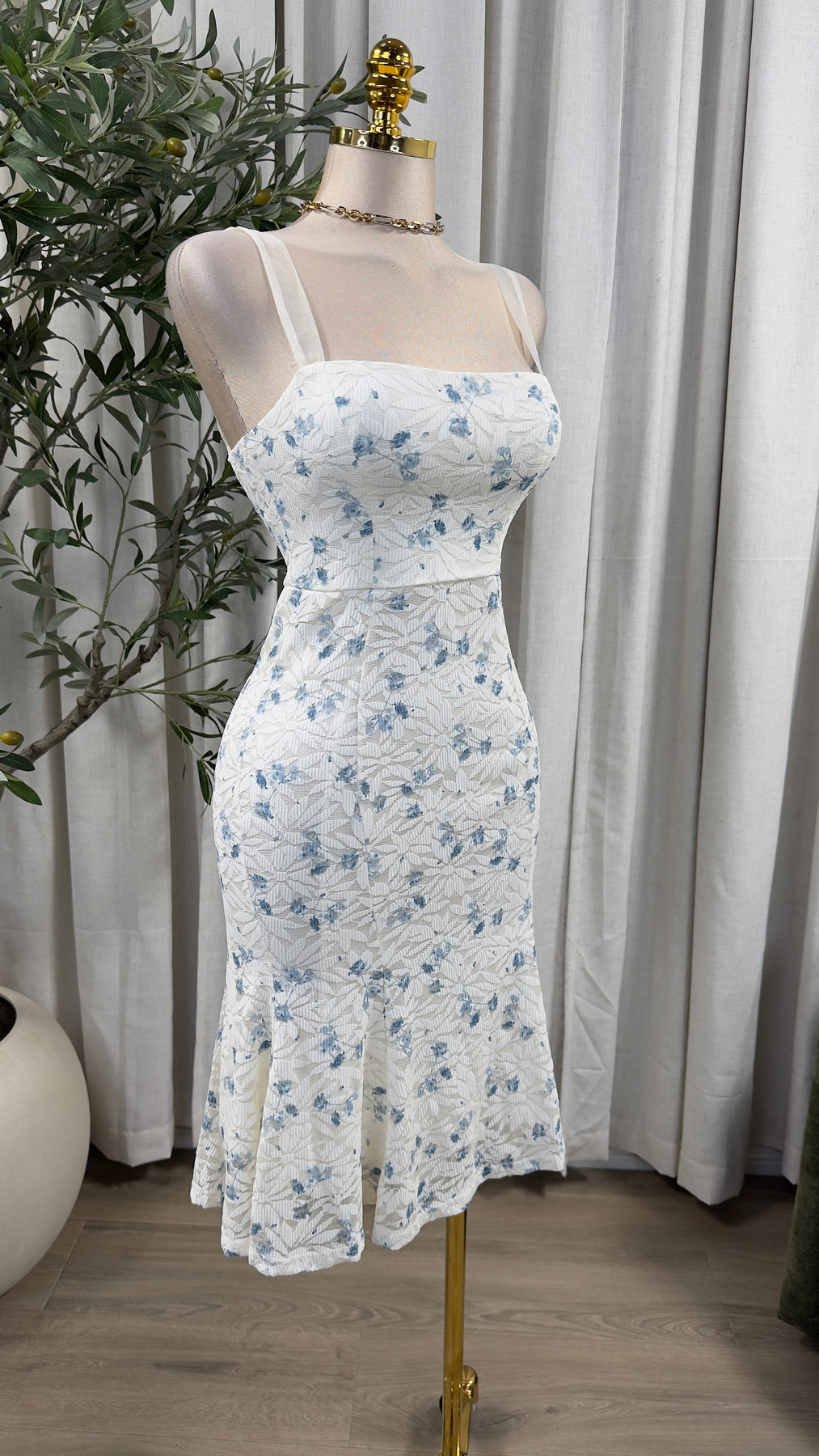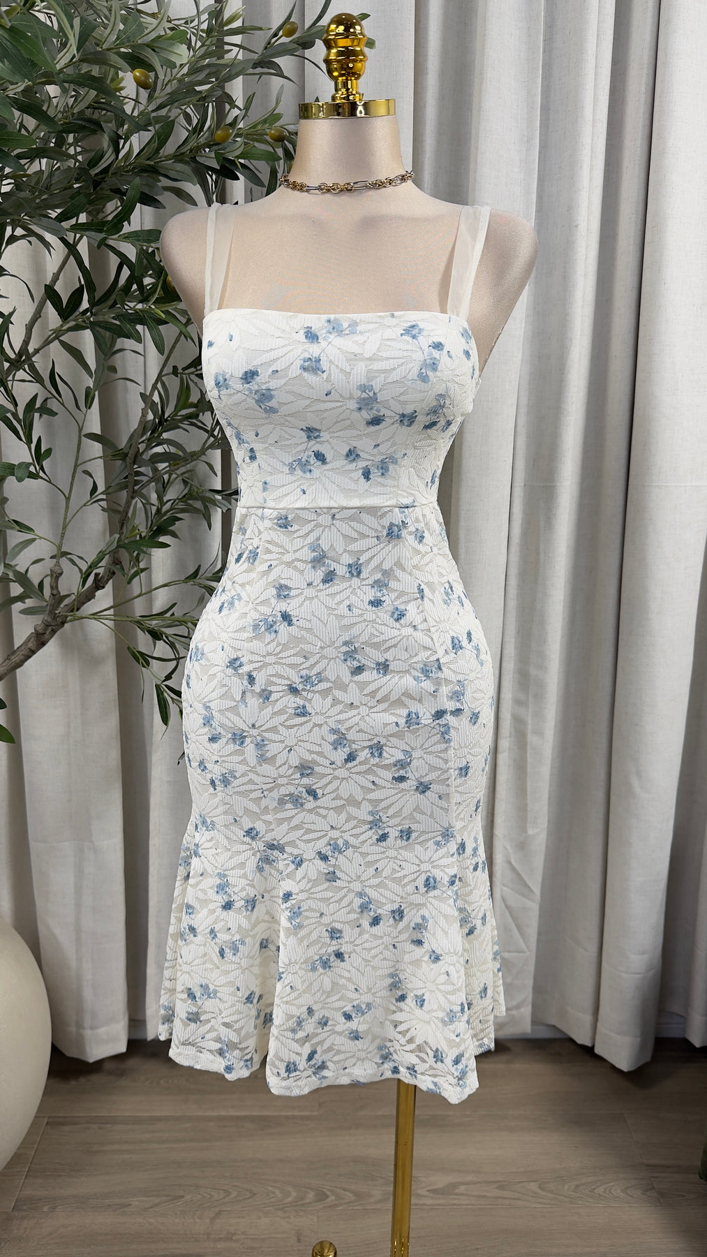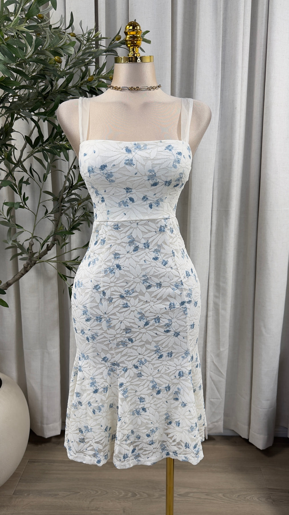 Organza bow strap floral lace midi dress Amazing fit.Hidden zipper on back.