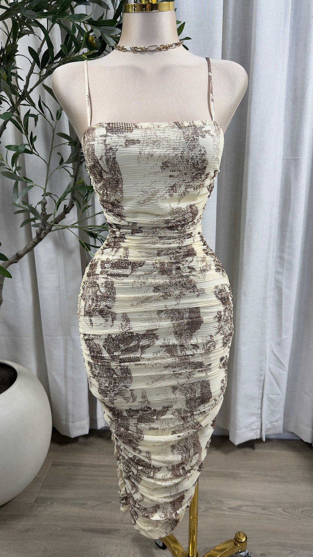 Great Quality. Mesh Cream/Brown Print Dress