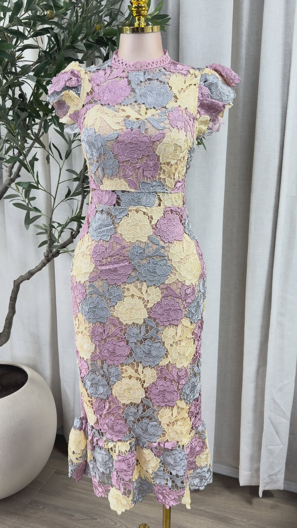 Top quality Floral Lace Short Sleeve Midi Dress. Amazing fit. No stretch. Hidden zipper on back.