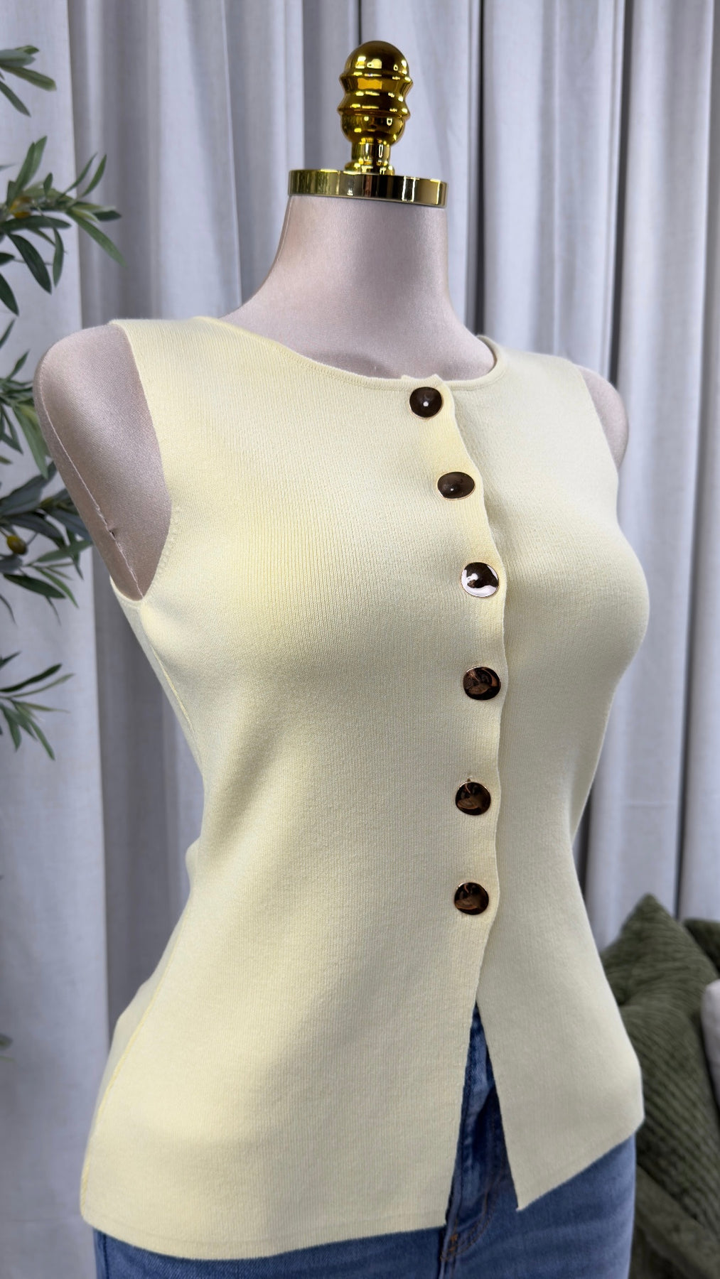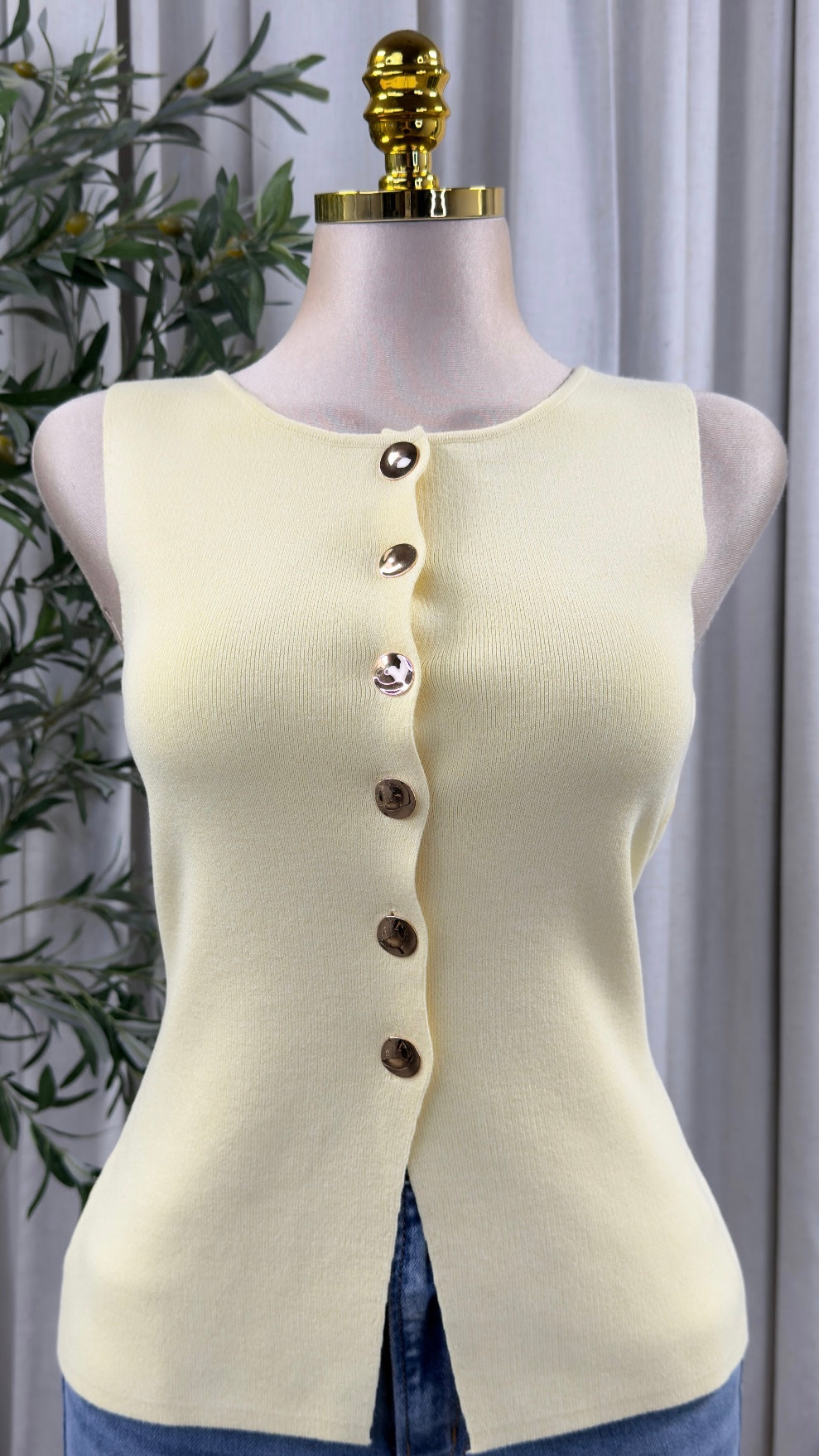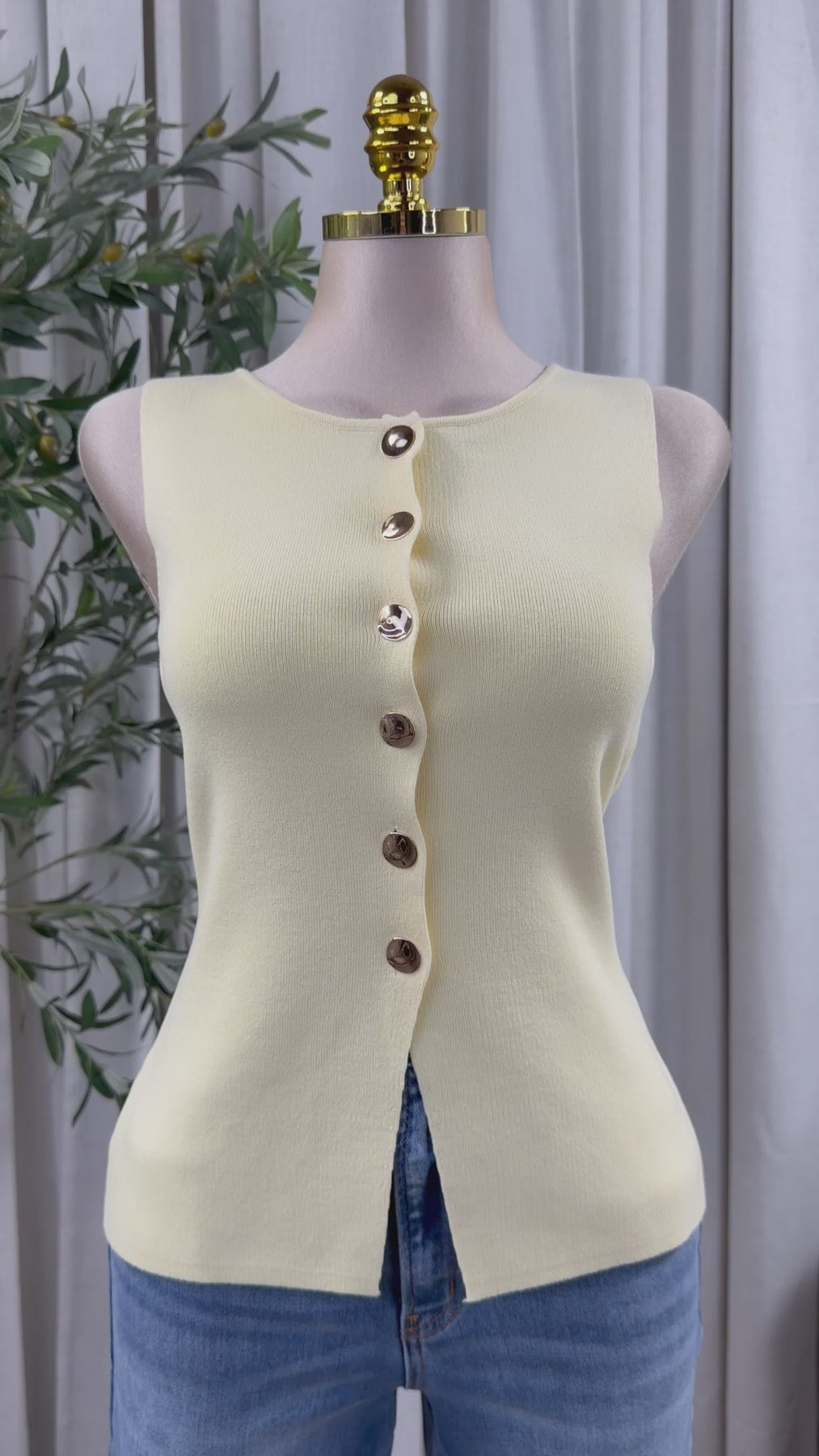 Knitted Vest Blouse w/ Front Slit & Gold Buttons