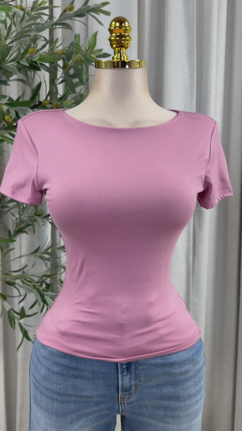 SHORT SLEEVE DOUBLE LINED ROUND NECK TOP